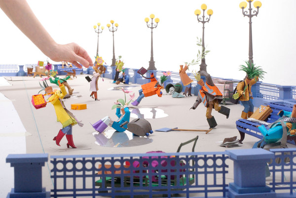 32 张 3D纸人火焰战-手工制作的3D纸雕艺术作品,描绘战争时期俘虏士兵的场景