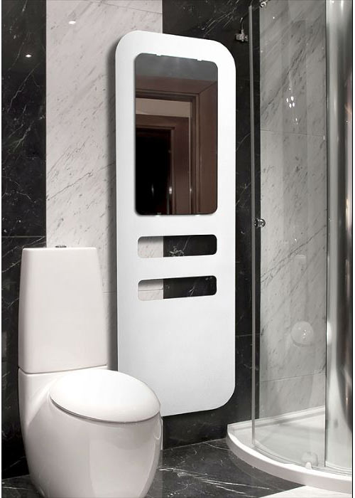 5 张 它是一个玩具,一个雕塑,还是散热器?但是,事实上,它是一种便携式电动散热器-光滑的白色或有光泽的黑色铝制外壳,有一个柞木手柄,可以让你轻松地移动加热器上的轮子
