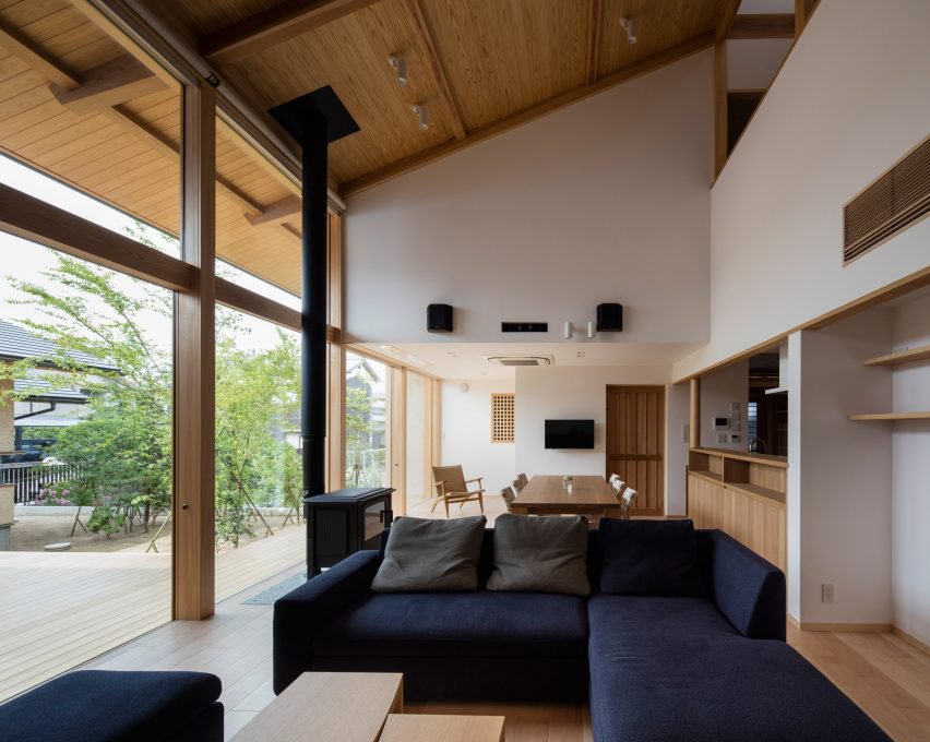 14 张 日本爱媛县传统庭院花园木屋建筑-该建筑面积225平方米,框架有五个独立的花园和露台,并且每个打开到一个不同的室外空间。厨房和餐厅位于大楼的东南角,可以使用滑动门分离成单独的空间